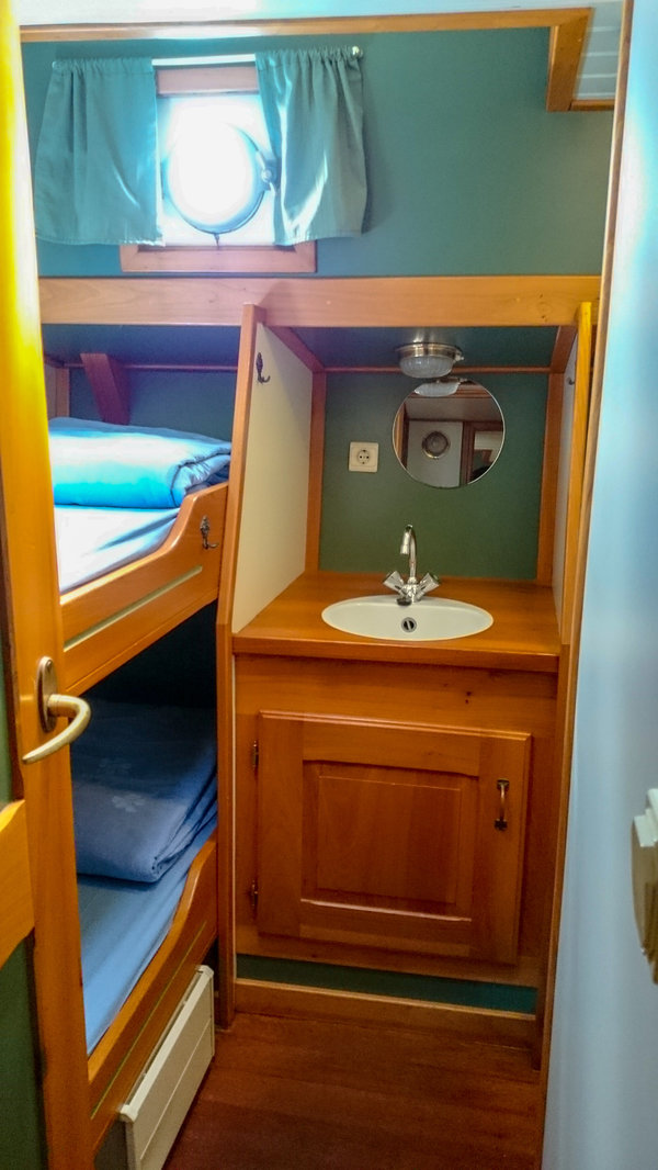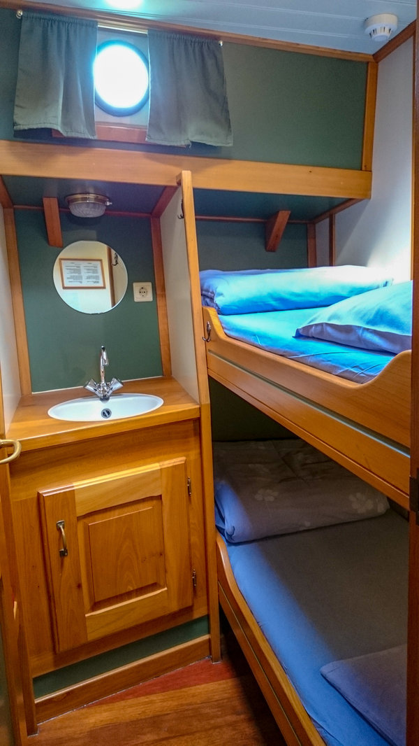 Und für die Nachtruhe haben wir gemütliche Kabinen mit fließend kaltem und warmem Wasser und einer Heizung für kältere Nächte. Zwei geräumige Duschen mit Toilette sowie je eine weitere dritte Toilette und Dusche sind vorhanden.