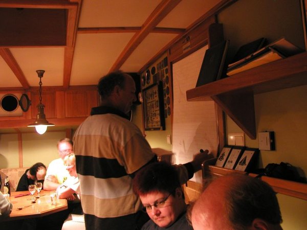 Nach dem Abendessen wird es wieder ernst. Der Ablauf des nächsten Tages ist zu besprechen. Die Olympische Strecke verlangt eine völlig andere Taktik. Einerseits ist mit wesentlich mehr Verkehr zu rechnen, da sich Schiffe aus beiden Kategorien begegnen. Andererseits sieht man seine Gegner und damit auch deren Position. Das macht die Sache erheblich interessanter.