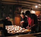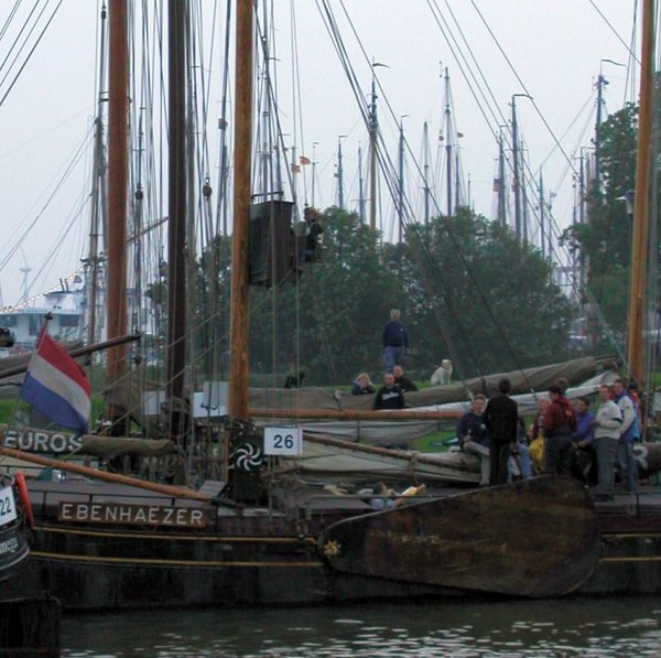 Bei der Ankunft in Enkhuizen zeigt das Wetter schon, worauf wir uns am Wochenende einzustellen haben – es ist kalt, feucht und windig. Die La Bohème liegt im Innenhafen des Krabbersgat – direkt vor Kopf des Hafenbeckens. Mit Einbruch der Dunkelheit trudelt so nach und nach die Besatzung ein und wird von Christine und Léon herzlich empfangen. Bei Kaffee und Kuchen machen wir unsere erste Bekanntschaft. Die meisten kennen sich untereinander noch nicht. Viele sind zum ersten Mal auf der La Bohème – manche sogar zum ersten Mal auf einem Plattbodenschiff. Die Nationalitäten sind bunt gemischt – Niederländer, Deutsche, Belgier und französische Kölner (oder kölsche Franzosen?). Gegen 20:00 Uhr geht Léon zum großen „Palaver“ in De Nieuwe Doelen. Dort wird beratschlagt und besprochen, wie der erste Regatta-Tag ablaufen soll.