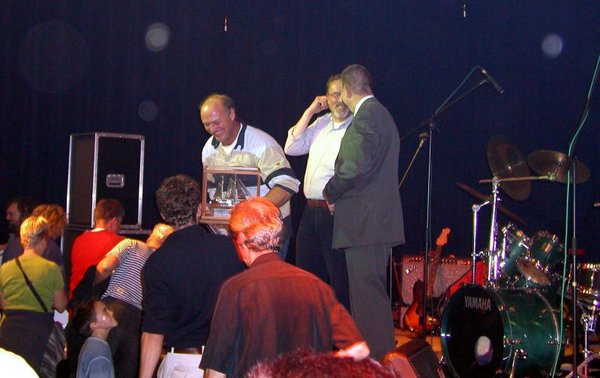 Pünktlich gegen 22:00 beginnt der Bürgermeister von Enkhuizen mit der Siegerehrung. Er fängt mit den hinteren Platzierungen an. Bei den vorderen Plätzen macht er es spannend, indem er immer zwischen Klasse A und B wechselt. Ganz zum Schluss ruft er den Gewinner des silbernen Klippers auf die Bühne – unseren Léon. Der hat sich Verstärkung mitgenommen – seinen Sohn Florian. Dieser zeigt dann auch, dass er schon genau weiß, wie man sich als Gewinner zu benehmen hat. Wie man dort hinkommt, wird er später lernen.