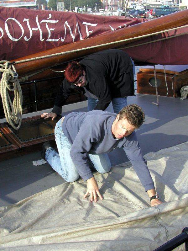 Für uns gibt es zunächst noch einmal Arbeit, denn wir müssen die Segel noch sauber wegpacken. Bouke gibt uns in seiner unnachahmlichen Art einen kleinen Lehrfilm, wie man es richtig macht.