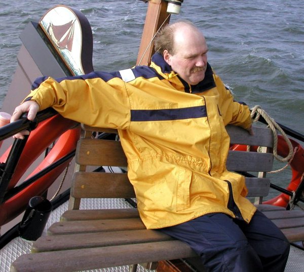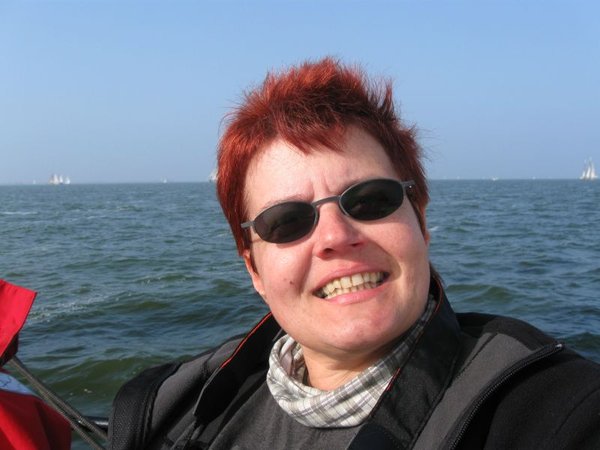 Gegen 11:20 Uhr erreichen wir die Ansteuerungstonne von Stavoren. Wir legen Kurs 140° in Richtung Urk an. Es dauert nicht lange, da kündigt sich das nächste Unheil an. Das Stahlseil, mit dem das Backbordschwert aus dem Wasser geholt wird, ist ausgerauscht und wir ziehen es über Grund. Guter Rat ist teuer. Bouke legt ein Seil um den Hals des Schwertes und wir ziehen mit allen verfügbaren Kräften am Schwert. Stark lässt sich das Schwert davon nicht beeindrucken. Es wiegt 1,5t und das Seil rutscht immer wieder ab, so dass zu allem Pech auch noch der Hebelarm immer kleiner wird. Nach einigem Ziehen schaffen wir es zumindest, dass das im unteren Schwertteil befindliche Auge oberhalb der Wasserlinie ist. Sofort steigt Bouke außenbords auf die Scheuerkante und fädelt ein zweites Seil in das Auge. Nun ziehen wir an diesem Seil. Aufgrund der besseren Hebelwirkung schaffen wir es, das Schwert soweit aus dem Wasser zu ziehen, dass wir mit dem Bootshaken das Stahlseil greifen und an Bord holen können. Bouke fädelt das Stahlseil wieder in die Umlenkrollen und schlägt es im Winschenkasten an. Damit ist auch dieses Problem gelöst.