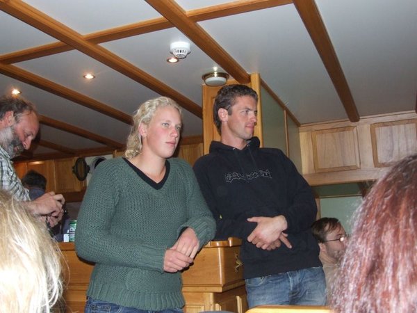 Gegen 21:30 Uhr machten wir uns dann auf den Weg zur Nieuwe Doelen zur Preisverleihung. Schon von weitem sahen wir eine Menschentraube vor dem Saal. War der Laden in diesem Jahr so voll? Als wir näher kamen, wurde uns klar – auch in den Niederlanden gilt ein Rauchverbot in öffentlichen Räumen. Im Saal war bereits einiges los. Auf der Bühne spielte eine Band. Sie war um Längen besser als die Gruppe im letzten Jahr. Vor der Bühne hoben die Menschen das Tanzbein – und weiter hinten die Biertassen. Kurz nach 22:00 Uhr kam dann der Bürgermeister von Enkhuizen und verkündete das Ergebnis. Als er bei Platz 4 ankam und den Waterwolf nannte, gab es Buh-Rufe. Damit war klar – Jelte Toxopeus vom Waterwolf hatte die Situation wohl besser dargestellt. Damit gehörte die Eensgezindheid zu den disqualifizierten Schiffen. Erwartungsgemäß wurde die La Boheme als zweitplatziertes Schiff genannt. Wir ließen uns nichts anmerken und jubelten – fast soviel, als wenn wir gewonnen hätten.