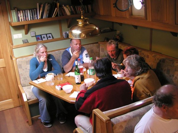 Da der Wind immer mehr auffrischte - es wurden mehr als 6 Windstärken, und das im Hafen - blieben wir im Salon unter Deck. Wir testeten unsere mitgebrachten Spirituosen an - und natürlich Wein und Bier. So dauerte es nicht allzu lange und wir hatten die notwendige Bettschwere.