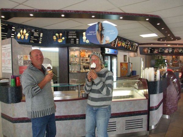 Bei Nieselregen gingen wir zu unserem Lieblingsfischladen - Doedes Vishandel. Anschließend kam ein trauriger Moment. Es hieß Abschiednehmen von Inge und Reinhard. Die Fähre kam pünktlich um 13:50 Uhr an. Guddi und Bernd lösten Inge und Reinhard ab. Wir nutzten die Gelegenheit und stellten uns zum Mannschaftsfoto auf.
