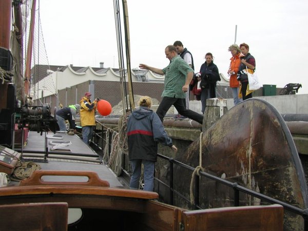 Nach dem Anlegen kam Jascha´s Freund Wessel an Bord. Er arbeitet auch als Maat auf Plattbodenschiffen (u.a. auf der Johanna Engelina). Die Wiedersehensfreude war natürlich groß.