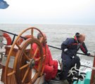 Auf der Fahrt unterzogen wir unter der fachkundigen Anleitung von Jascha - deren Augenaufschlag keiner widerstehen konnte - unser Schiff einer gründlichen Reinigung. Nicht nur der Saharastaub der letzten Tage musste von Bord - auch das Salz des Wattenmeeres musste abgewaschen werden.