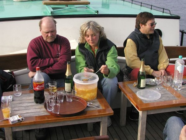 Den Tag ließen wir nach dem Abendessen an Bord ausklingen. Die erste der drei erstandenen Flaschen Bokma überlebte den Abend nicht.