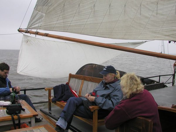 Direkt im Anschluss legten wir ab in Richtung Makkum. Das Wetter verschlechterte sich zusehends. Es wurde windiger, kälter und ein Dauerregen setzte ein. Auf einem ungemütlichen Kurs fuhren wir hoch am Wind nach Makkum. Zum Glück war es nicht so weit.