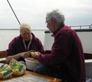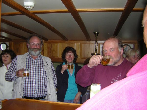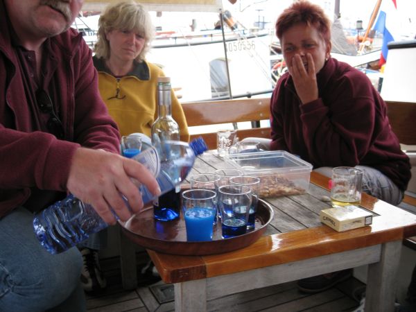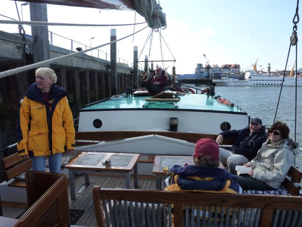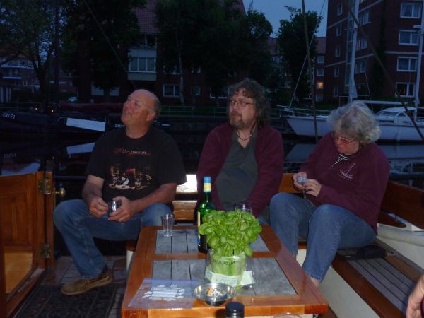 Beim Einlaufbier mußte sich Heiner plötzlich abmelden - wie aus heiterem Himmel schlug Montezumas Rache zu. Er bekam noch mit, wie Ingrid und Klaus an Bord kamen - wie Inge und Reinhard gingen schon nicht mehr. Er blieb nicht das einzige Opfer - Leon erwischte es nach den Poffertjes.