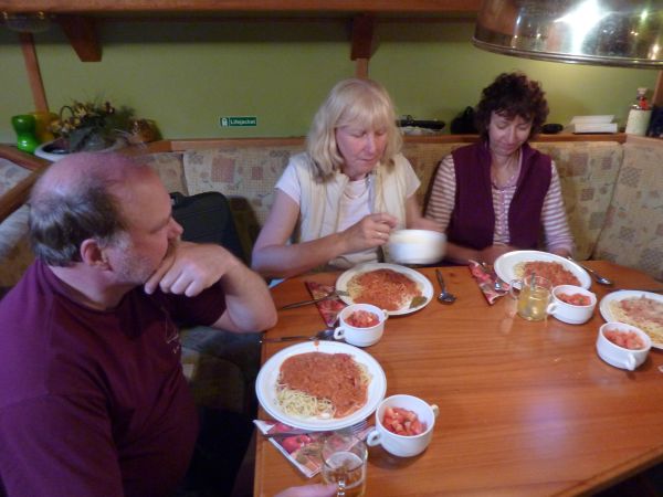 Um 21:30 Uhr gab es Abendessen. Auf der Speisekarte stand Chili con carne von Anke. Nach dem Abendessen warf Andreas die EePC-Jukebox an.