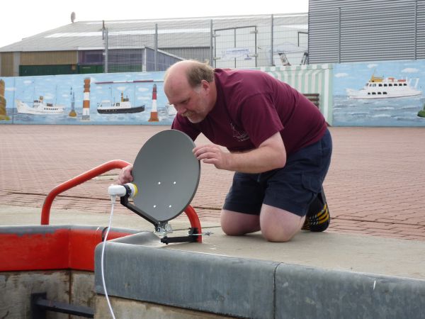 Gerade rechtzeitig für die zweite Halbzeit Niederlande gegen Japan machten wir um 13:52 Uhr im Hafenteil vor der Brücke am Kai fest.