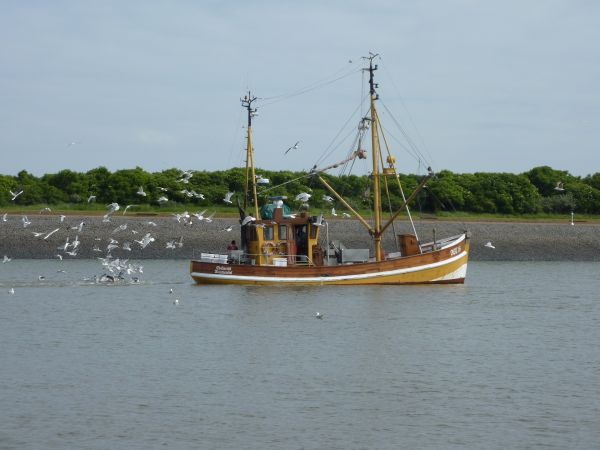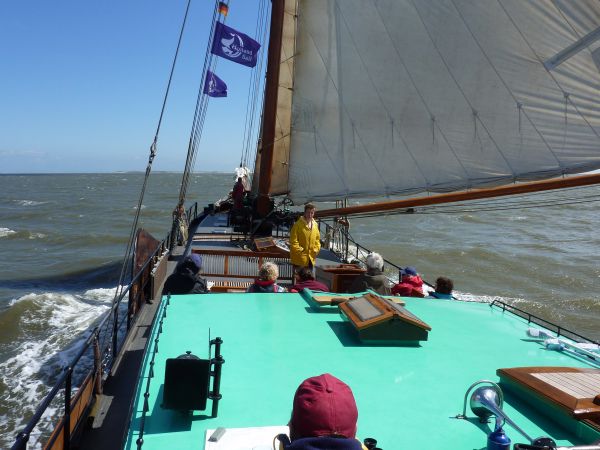 Kurz nach 11:00 Uhr legten wir ab. Der Wind kam von NW - für uns ganz günstig. Vorbei ging es an Memmert. Bei einem Blick nach hinten sahen wir, daß uns die Lemster Ark wieder folgte.