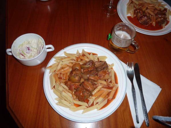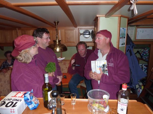 Nach dem Einlaufbier gab es als kleine Zwischenmahlzeit ein Süppchen und Jägertopf. Ein Teil der Crew ging danach an Land.