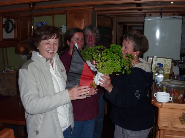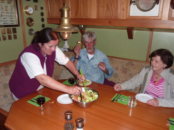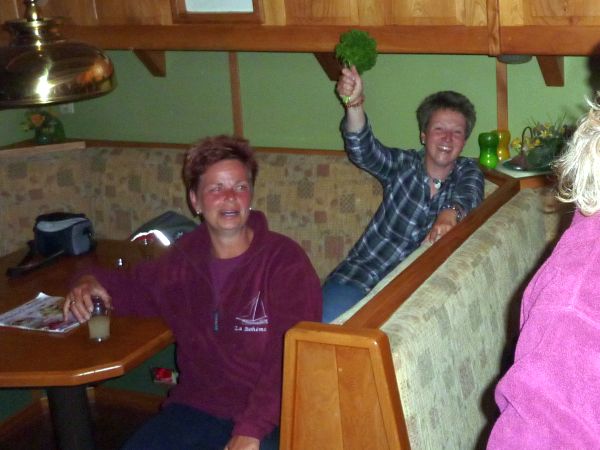 Auf dem Speiseplan für das Abendessen stand heute Schaschlik von Renate. Nach dem Essen schritten wir zur Siegerehrung - das letzte Spiel unseres Crew-Tips war vorbei - und die Sieger hießen - Renate und Mausi. Herzlichen Glückwunsch. Den letzten Abend ließen wir in gewohnter Weise feucht fröhlich ausklingen.