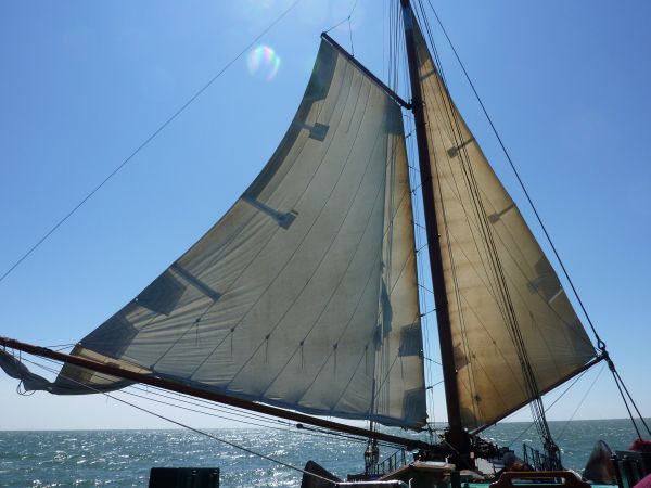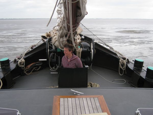 Um 12:34 Uhr ging es weiter. Wohin war noch nicht ganz klar - außer - daß es Vlieland oder Terschelling wird. Aber wir hatten ja auch noch Zeit, da der größte Teil des Weges identisch war. Der Wind drehte leicht von West auf NNW, so daß wir uns letztendlich für Terschelling entschieden. Ab 15:00 Uhr wurde es schwieriger. Die Flut lief wieder ab und wir bekamen Gegenströmung. Da der Wind mehr und mehr nachließ, wurde das zunehmend problematischer. Denn vor Terschelling blieb uns ein Kreuzkurs nicht erspart. Pro Schlag machten wir nur um die 100m Höhe wett. Teilweise drohte es zurückzugehen. Andere Segelschiffe setzten die Segel dicht und warfen die Maschine an - nicht so Leon. Auch der Fährverkehr machte uns zu schaffen.