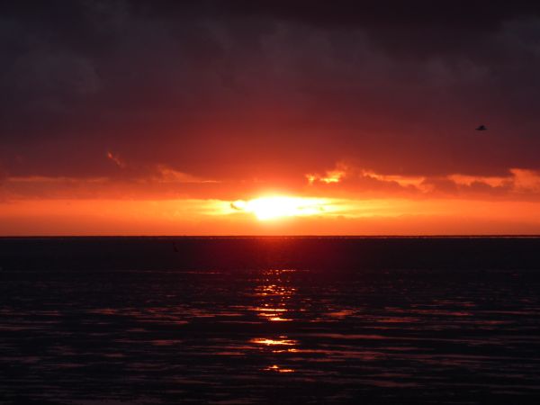 Nach dem Essen bereiteten wir uns langsam auf unsere Nachtfahrt vor. Gegen Mitternacht erwarteten wir genug Wasser für den Start. Leon und Melanie zogen zwei Reffs ein, denn der Wind war nach wir vor kräftig. Da wir noch einige Sandbänke passieren mußten, durften wir nicht zu schnell werden. Ist unter dem Rumpf zu wenig Wasser, wird das Schiff bei zu hoher Geschwindigkeit unsteuerbar.