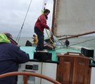 Über Funk hörten wir die Nachricht, daß eines der Segelschiffe 3 Personen der Crew auf Terschelling vergessen hatte - Sachen gibt es.